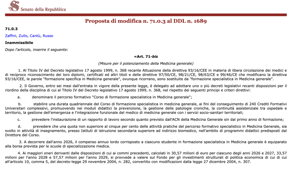 Manovra. Stop all’emendamento per l’istituzione della specializzazione in medicina generale