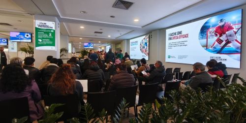 Di grande impatto visivo le immagini diffuse sui display interni allo stadio che riprendevano i contenuti specifici degli eventi, messaggi di salute e l’importanza degli screening oncologici.
