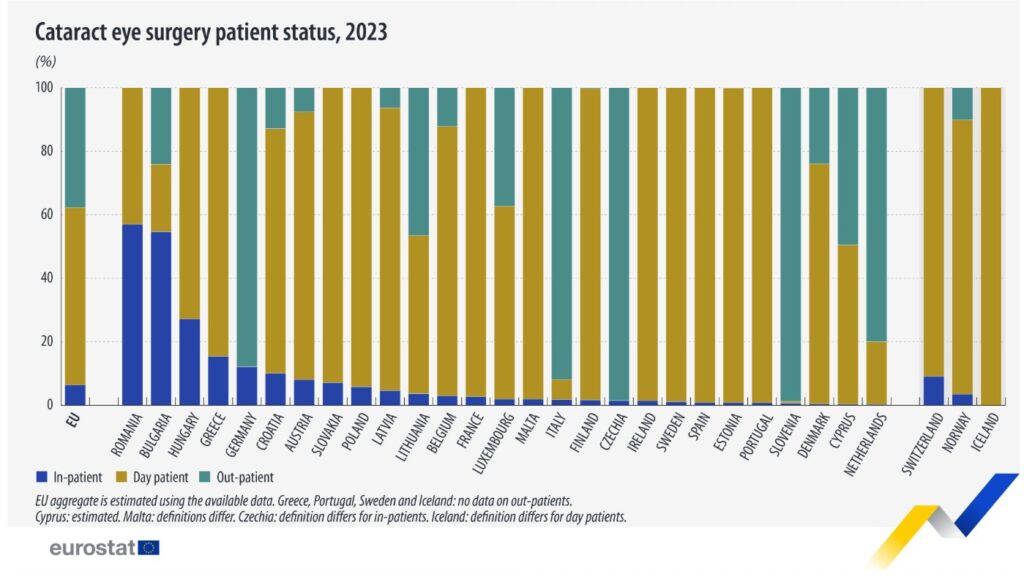 Gli interventi, in Europa, sono stati 1.118 ogni 100.000 persone, 1.005 in Italia (pari a quasi 593 mila interventi in totale). Il Lussemburgo ha registrato il tasso più elevato (1.627,3), la Romania il più basso (389,4). In Italia il 91,9% dei pazienti è stato trattato in regime ambulatoriale.
