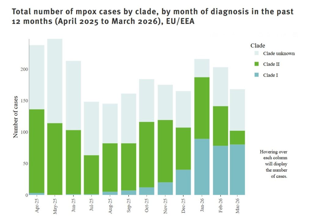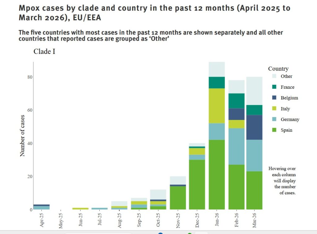 Dei casi di vaiolo delle scimmie segnalati nel 2026 il 92% dei casi di clade II e il 95% di clade I erano uomini che hanno rapporti sessuali con uomini. In Italia ne sono stati registrati 27, la Spagna ha invece il primato in Europa. Rimangono essenziali interventi tempestivi di vaccinazione per le popolazioni a rischio, segnala l'ECDC.